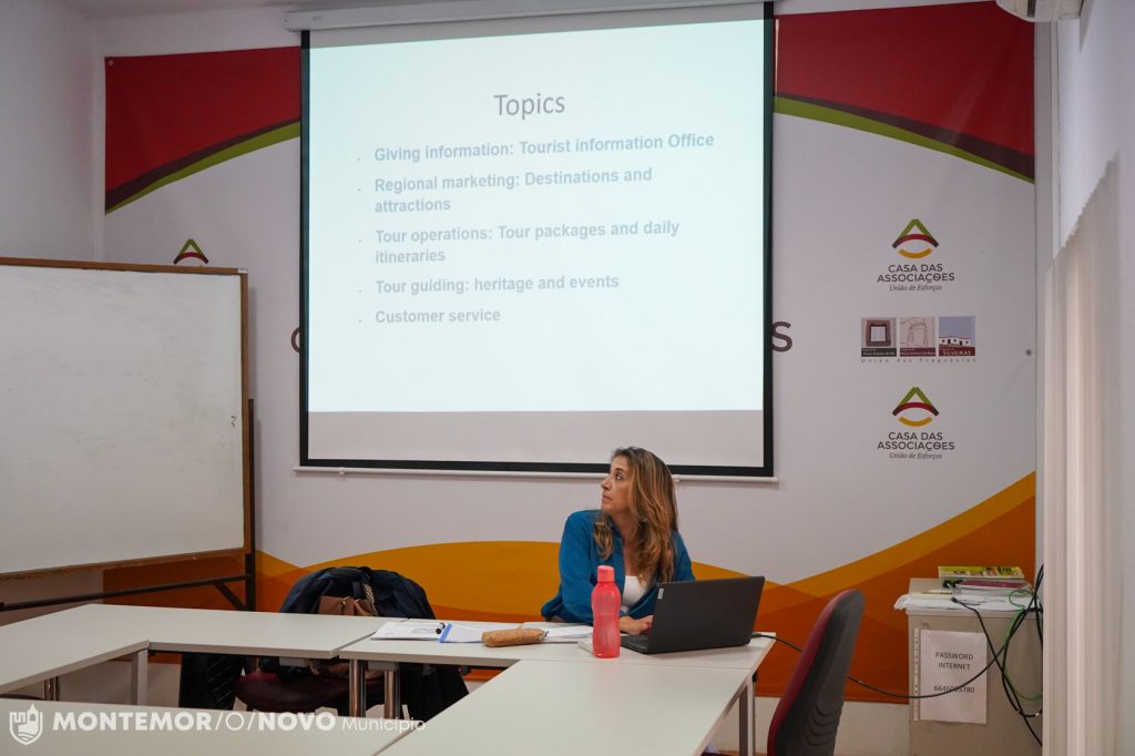 A formação, que conta com onze participantes, vem com o intuito de exercitar competências técnicas e vocabulário próprio a ser utilizado em contextos de informação e promoção turística.