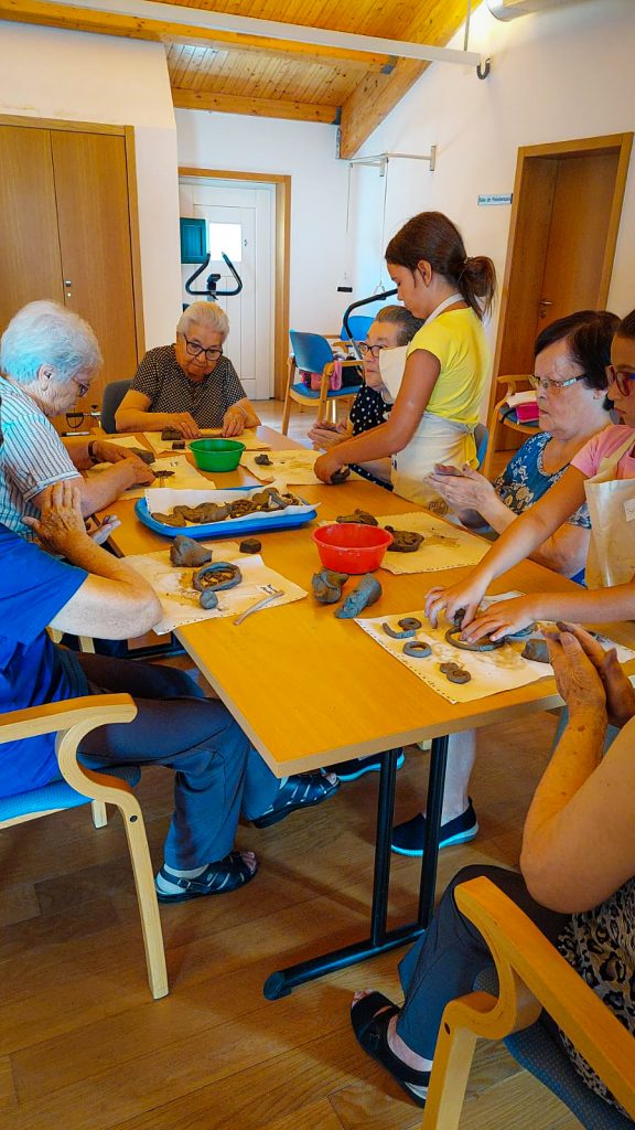 Como tem sido hábito, as crianças e os idosos juntaram-se em torno da mesa de trabalho, colocando mãos à obra para criar peças únicas em barro. Com um grande espírito de entreajuda e de confraternização, as peças iam surgido enquanto as várias gerações em reunião partilhavam diferentes histórias.