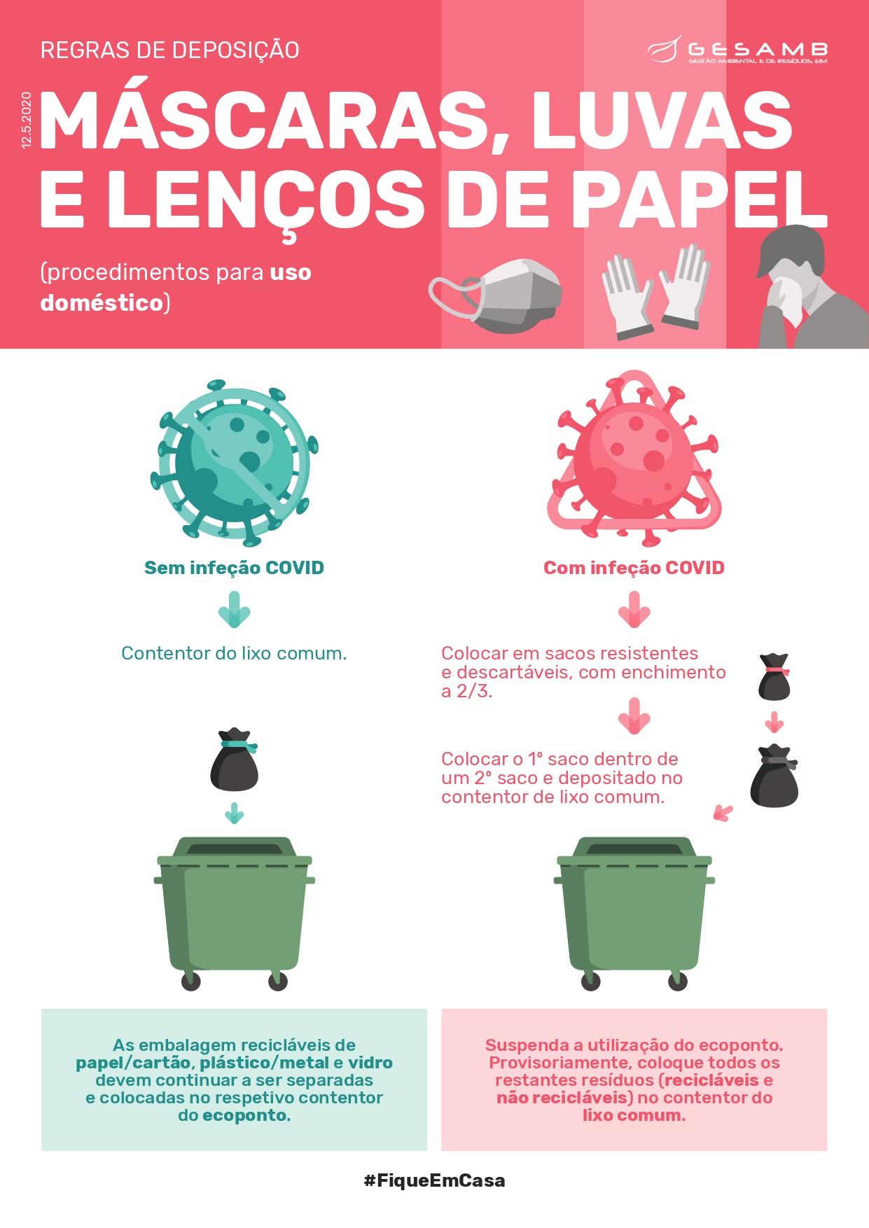 Atualizado em 28/08/2020Nas últimas semanas a Gesamb tem registado um número cada vez maior de máscaras, luvas e material de proteção no interior dos ecopontos, algo que contraria todas as recomendações de saúde e segurança públicas atualmente em vigor.